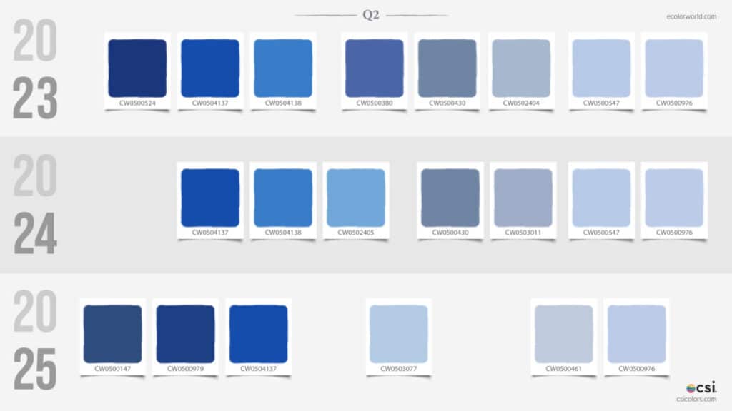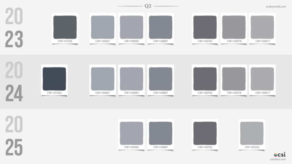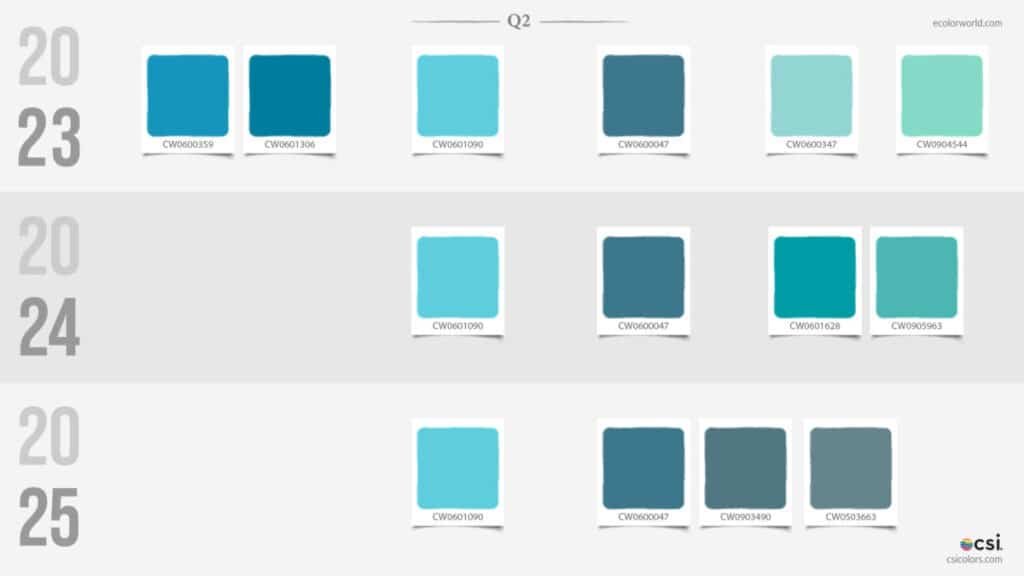 When we analyze the shifts in color popularity between Q2 of 2023/2024 and Q2 of 2025, we discover intriguing transformations within each color family. This comparison reveals the colors that have gained traction and highlight emerging shades absent in previous years, signifying new trends that designers can leverage to energize their work and captivate their audiences.