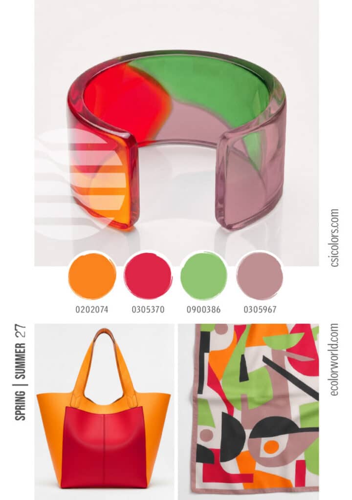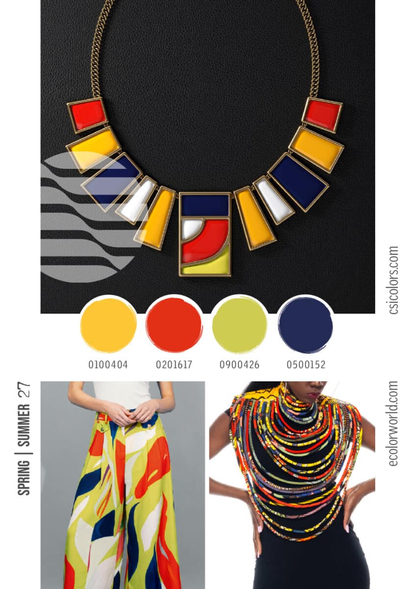- Key Applications: This high-contrast palette is perfect for striking geometric prints, bold accessories, and statement jewelry. Expect to see these energetic tones driving capsule collections, graphic resort wear, and oversized summer accessories.