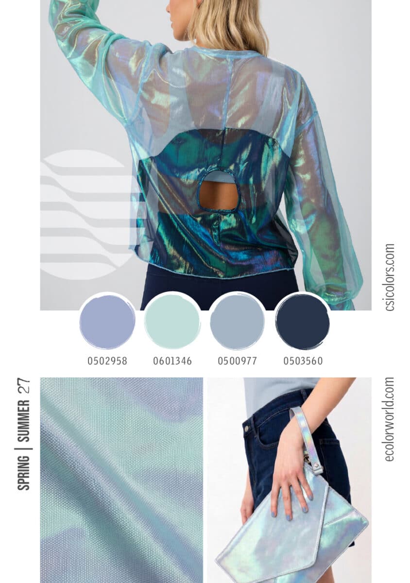 - Key Applications: This story relies heavily on material innovation. Think sheer overlays, holographic accessories, and high-shine synthetic fabrics. These tones work beautifully for playful footwear, sheer hosiery, and futuristic resort wear, offering a sense of weightless escapism.