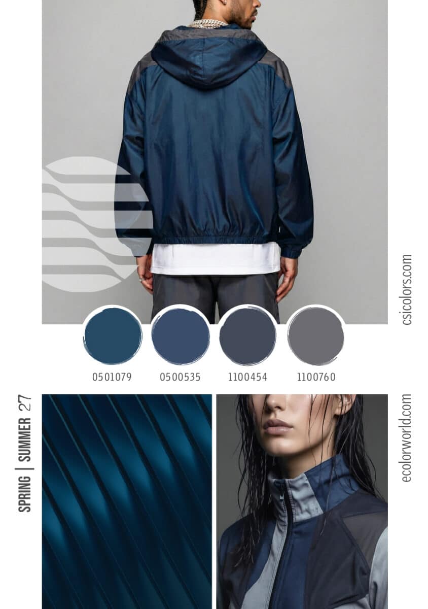 - Key Applications: Driven by performance fabrics, this palette is central to windbreakers, technical outerwear, and sleek metallic textures. It offers a cool, urban counterpoint to the season’s warmer, more vibrant stories.